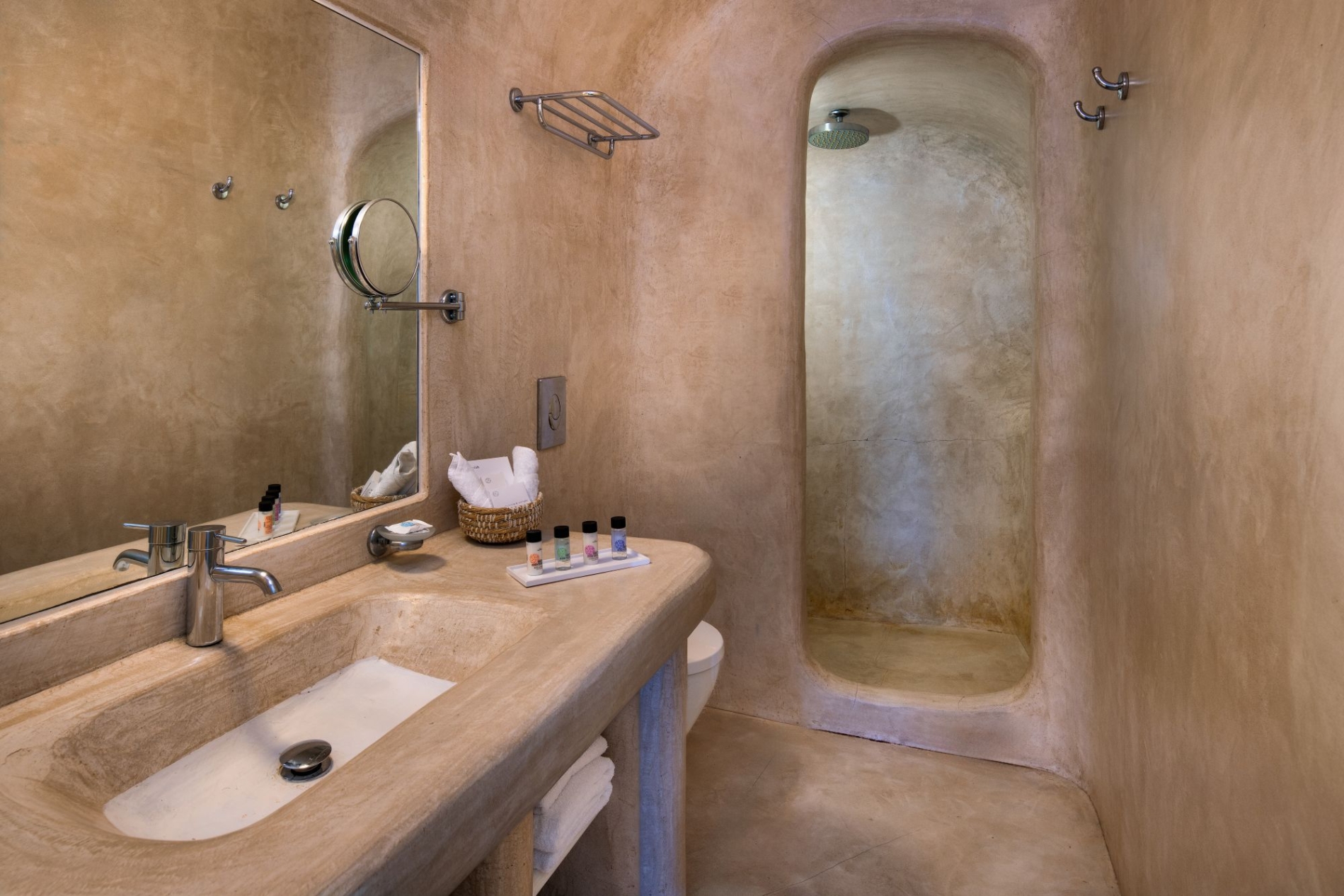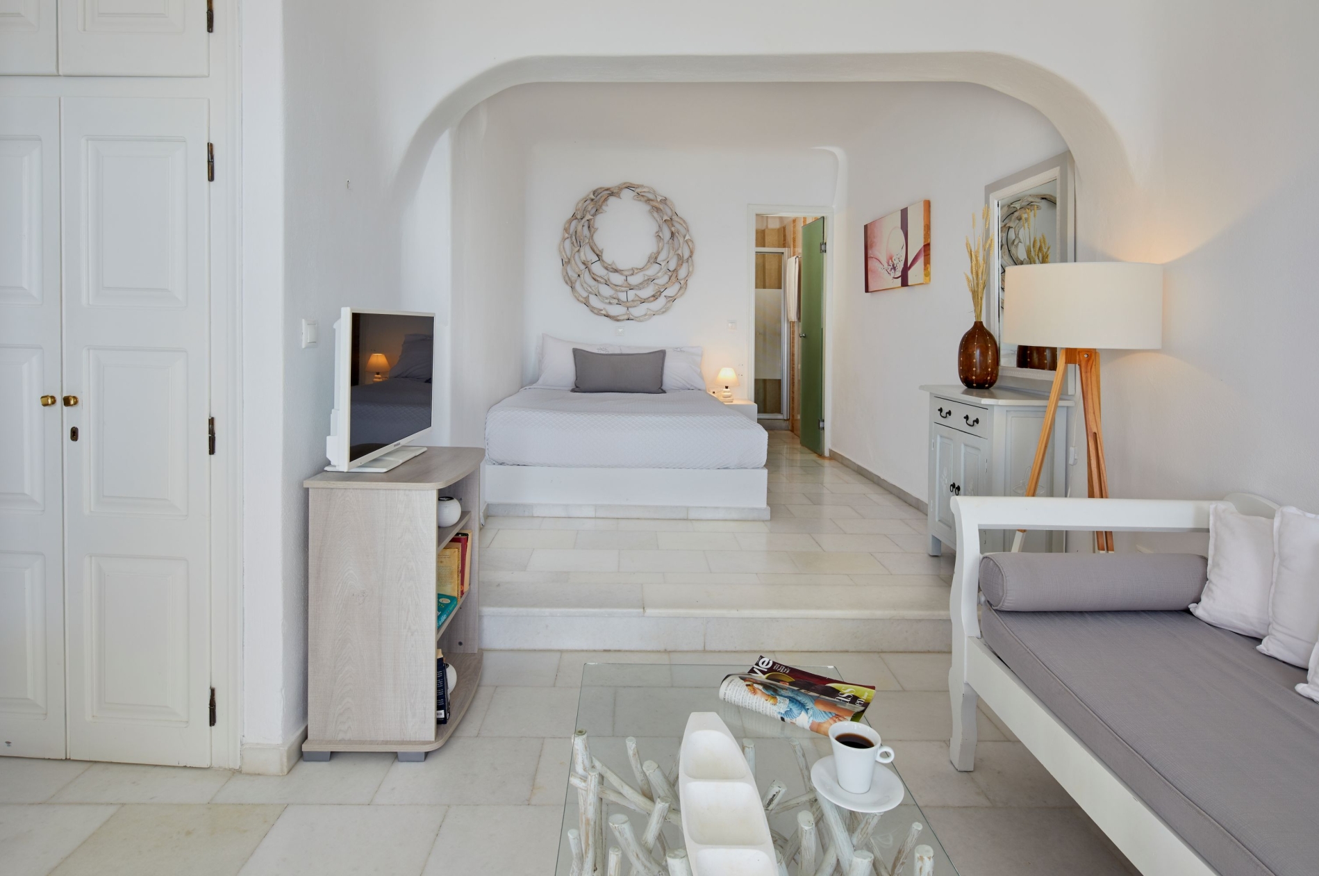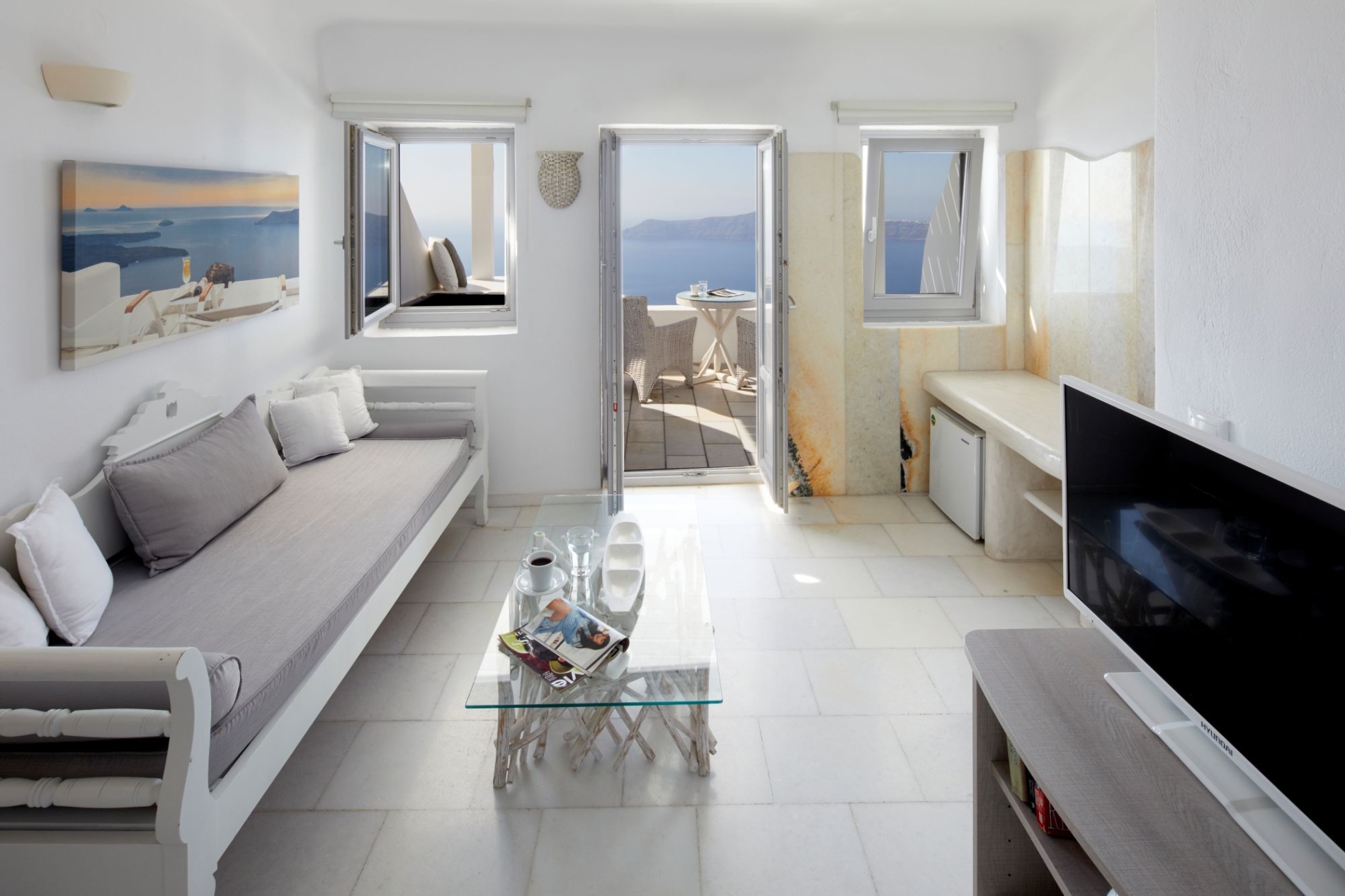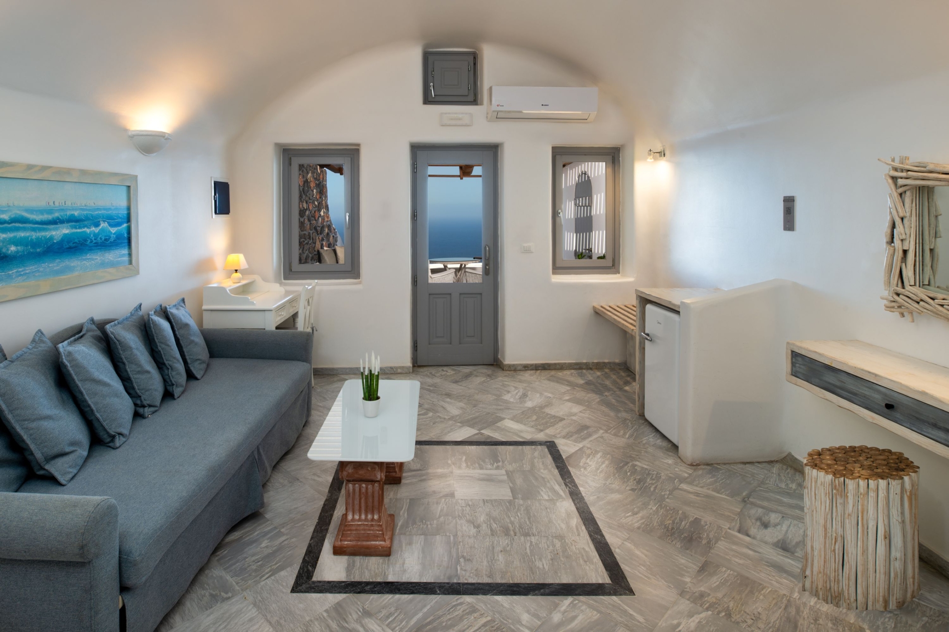 Situated in Imerovigli Santorini, probably the most romantic island in Greece, this beautiful suite is equipped with a living room area, a bathroom with a Jacuzzi bathtub mixing traditional and contemporary design and a veranda with an outdoor Jacuzzi for a unique sunset on the cliff of Caldera.